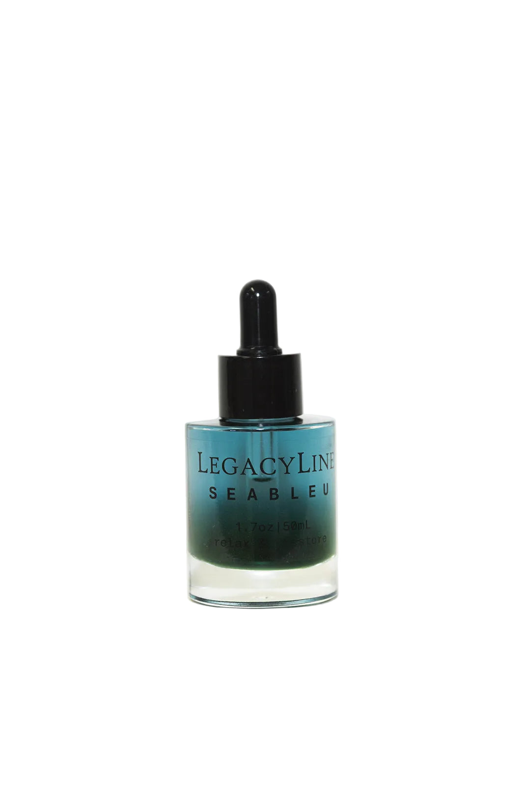 Begin your cleansing ritual with one full dropper of Sea Bleu oil—infused with ocean-kissed botanicals. Massage gently from chin to forehead in slow, circular motions, like waves washing the shore. Lay a very warm cloth across your face and breathe deeply as the warmth opens your pores and invites renewal. Wipe clean, revealing a radiant, sea-glow finish. Your skin, like the sea—refreshed, luminous, alive.